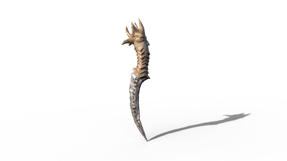 This 3D asset is a fully-textured, realistic-looking dagger. It features a black finish and a gold-plated handle, with intricate designs etched into the blade. The blade has a sharp point and a curved edge, making it perfect for close-quarters combat. The handle has a solid construction and is designed for a comfortable grip. The dagger comes with a sheath, making it easy to store and transport. With its detailed construction and realistic design, this is the perfect asset for any 3D artist looking for a realistic-looking dagger.